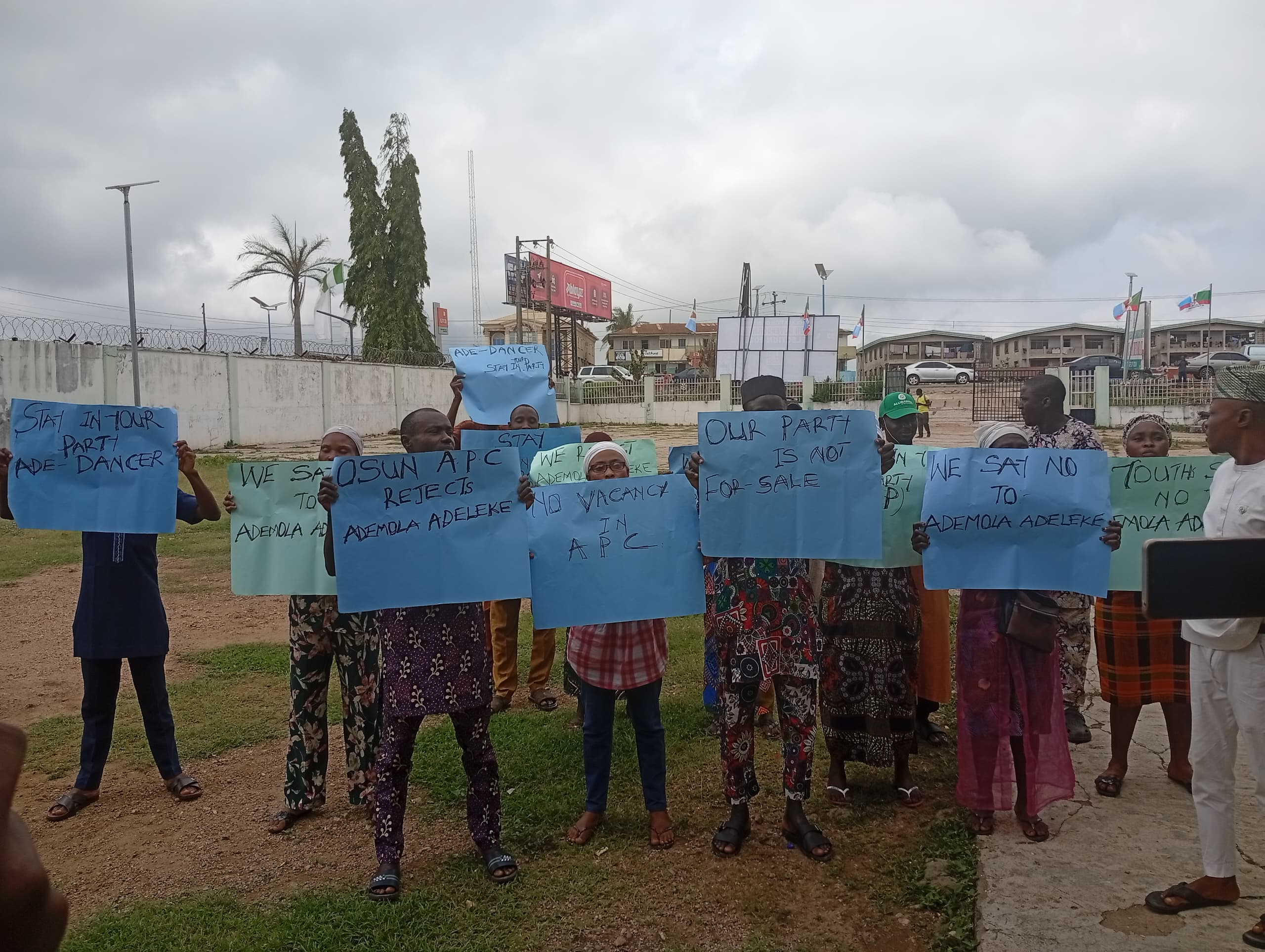 Some members of the All Progressives Congress (APC) in Osun State on Friday marched to the state party secretariat at Ogo-Oluwa, Osogbo, expressing their displeasure over moves to grant Gov. Ademola Adeleke an automatic ticket as the party’s gubernatorial candidate for the 2026 election.