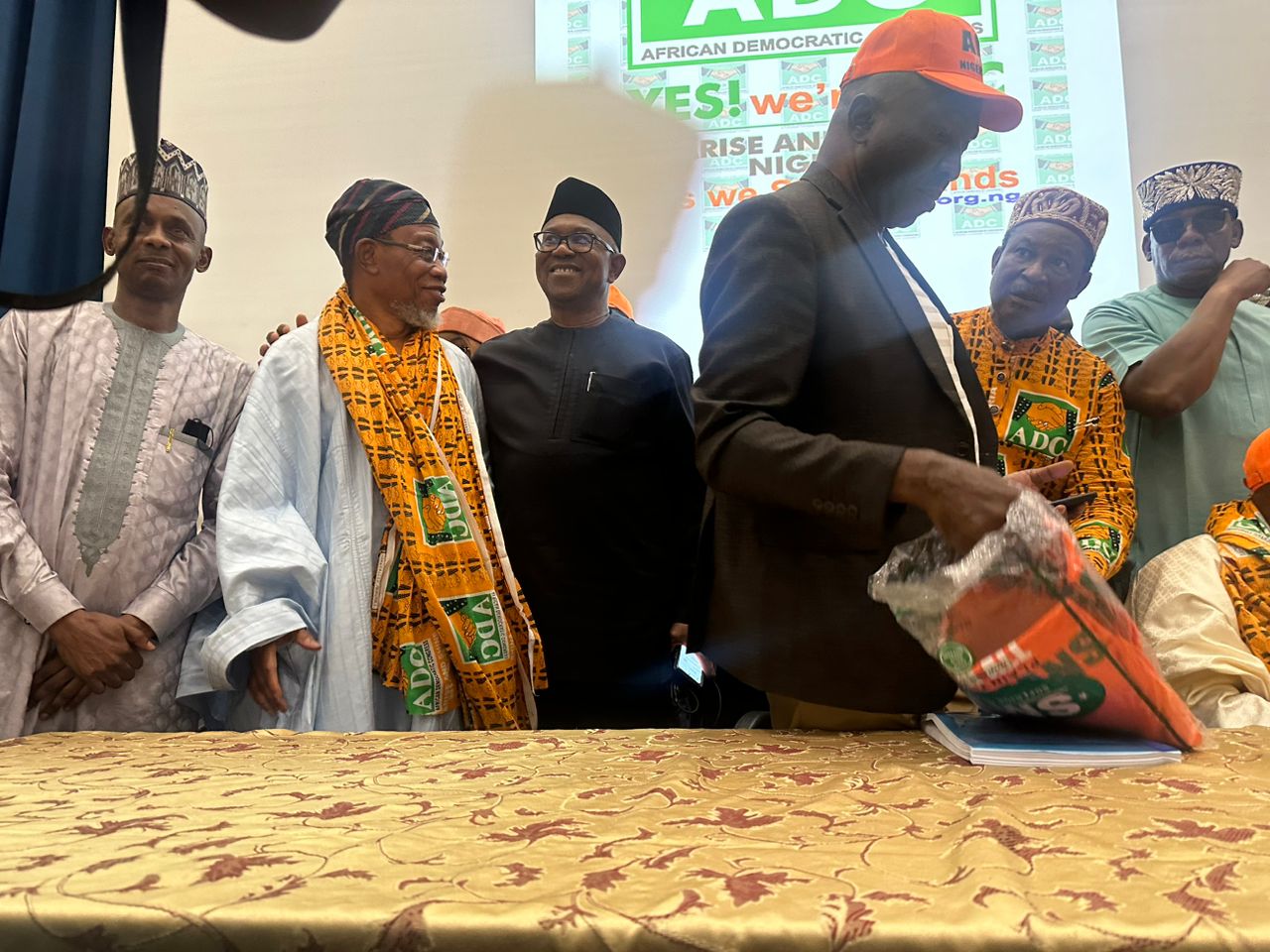 During the event, Senator David Mark and Ogbeni Rauf Aregbesola were presented with ADC membership cards.