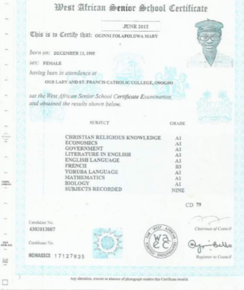 Mary has always been a highly cerebral student. In the year 2013, she was adjudged the best student in WAEC. She proceeded to study Law at the Obafemi Awolowo University, Ile Ife but was forced to leave OAU in her sophomore year, with a CGPA of 4.53, due to ASUU strike.