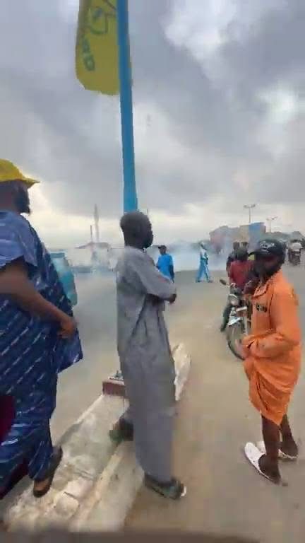 In the video, residents were seen scampering for safety as the flame of the teargas filled the air.