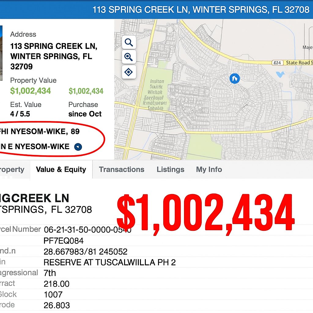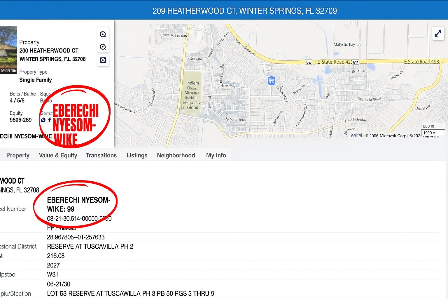 He wrote, “It turns out that international thief Nyesom Wike has three different properties in Winter Springs, Florida. All of them were hidden under the name of his wife, Eberechi Suzzette Nyesom-Wike, who also serves as a Court of Appeal judge in Nigeria, and shared out to his children.