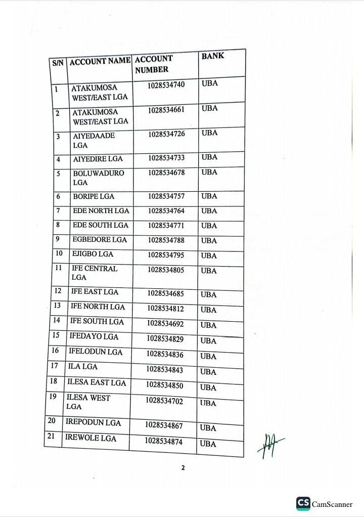 OSUN DEFENDER also checked the accounts and confirmed that they were opened in the names of the council areas.