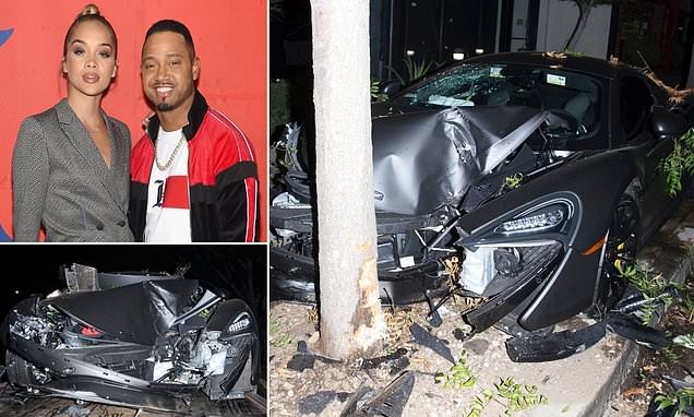 The McLaren sports car registered to the BET host crashed into a tree outside production offices on Ventura Boulevard in Los Angeles, knocking out a water pipe on the way.
