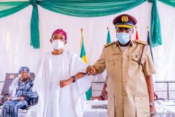 The minister of Interior, Ogbeni Rauf Aregbesola yesterday decorated Three Deputy Controller Generals of the Nigerian Correctional Service; Four Deputy Comptroller Generals of the Nigeria Immigration Service, and; One Deputy Commandant General of Nigeria Security and Civil Defence Corps with their new ranks.