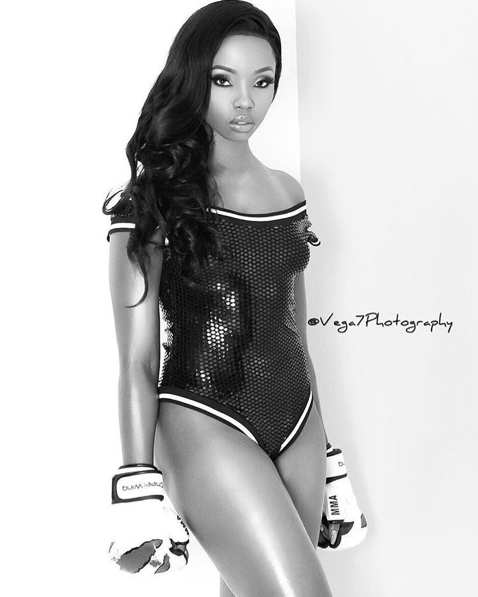 A couple of weeks ago former stripper Amber Rose had released hot adult rated pictures where she was pictured with boxing gloves in the semi nude pictures, now Big Brother Naija ex housemate BamBam has copied the foreign star with pictures of her own.