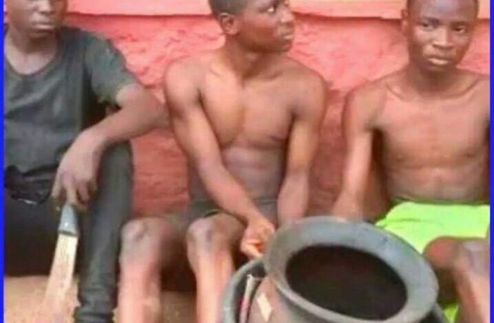 They were apprehended for slaughtering and burning the head of the victim, identified as a girlfriend to one of them, for money rituals.