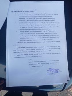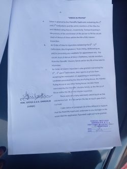A copy of the court order obtained by OSUN DEFENDER yesterday, reads: “Leave is granted to the Plaintiffs/Applicants restraining the 1st and 2nd Defendants and the entire members of the Oba Ara and Adedeji ruling houses respectively, from participating in the process of the nomination of the person to fill the vacant stool of Akirun within the life of this Interim Injunction.