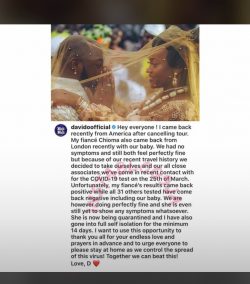 He explained that they have just returned from the US and that out of over thirty peopled that were tested, Chioma’s result came back positive.