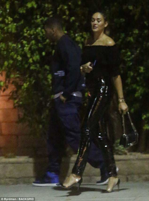 The Algerian model was pictured hugging one of the women goodbye after they enjoyed a sushi dinner together at Matsuhisa.
