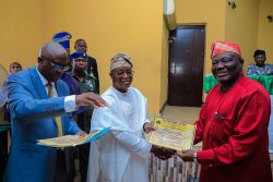 Governor, State of Osun, Mr. Adegboyega Oyetola and his Deputy, Mr. Benedict Alabi on Tuesday supervised the presentation Of retirement Bond certificates to retirees under the contributory pension scheme at Local Government Service Commission, State Secretariat, Osogbo.