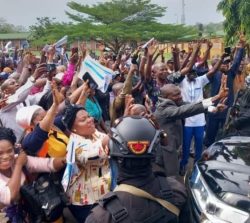 Workers in the Civil Service of the State of Osun, on Monday, trooped out to welcome Governor Ademola Adeleke, to the State Secretariat after the Appeal Court Judgment, that upheld his victory in the July 16, 2022 governorship election.