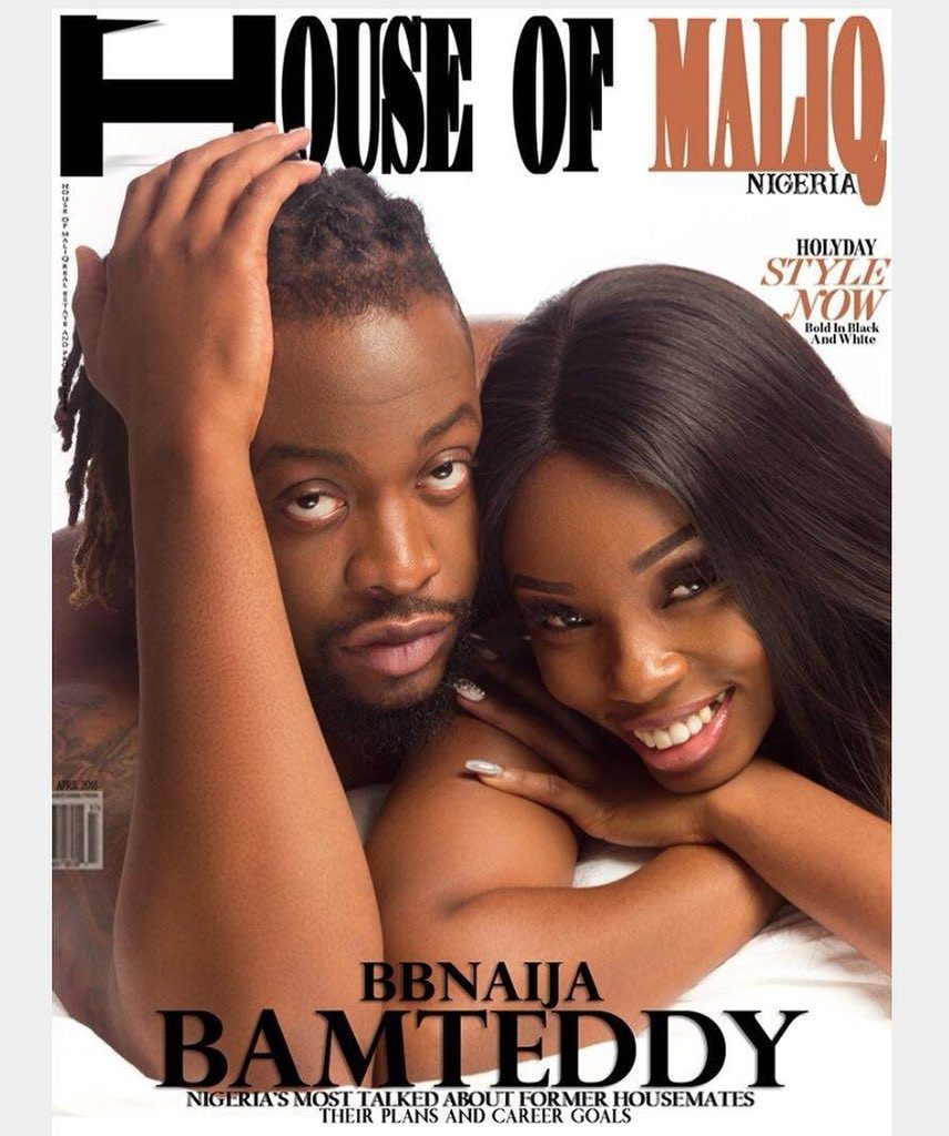 Former Big Brother Housemates, Teddy A and Bam Bam look so much in love especially in the picture they took semi naked as they feature in the April edition of House of Maliq magazine cover.