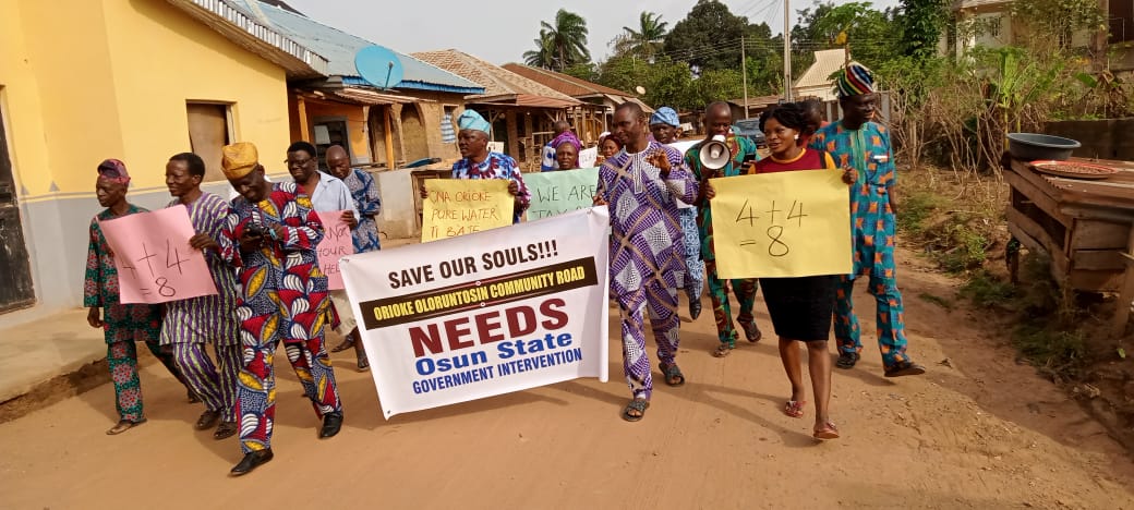 Speaking after a peaceful demonstration within the Community, Elder Bode Fafiyimu JP. Central Chairman, Oke Oloruntosin said some parts of the roads rehabilitation and constructions were abandoned by the government.