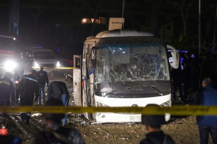 A statement by the public prosecutor’s office said 11 other tourists from Vietnam and an Egyptian bus driver were wounded when the homemade device exploded.