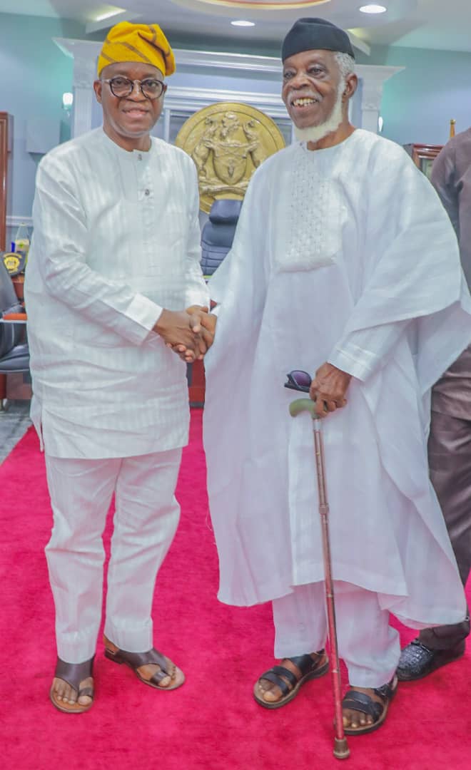 featured Osun September 27, 2019 Oyetola Greets Fasanmi At 94, Describes Him As Encyclopedia Of Progressivism